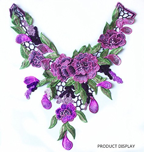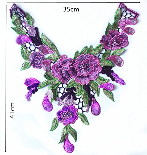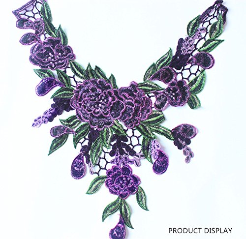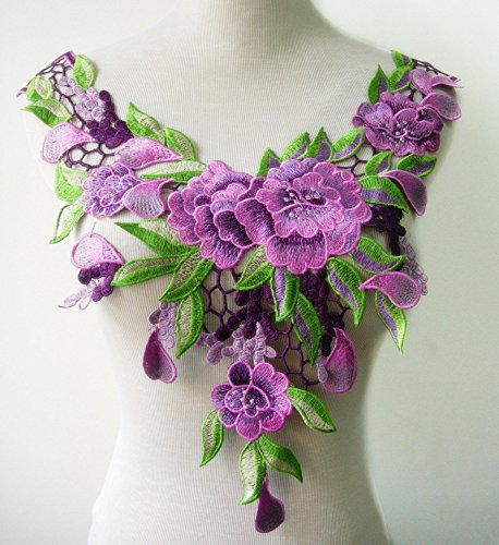 Embroidered Venise Lace Neckline Collar Violet Floral Green Leaf Applique Patches Scrapbooking Embossed Sewing T1335