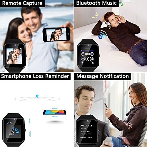 -. Feature : -View notifications from email, SMS, Caller ID, calendar and your favorite apps on your wrist.1.54" TFT LCD 2.5D Radian Capacitive Touch Screen 240*240 pixels, OGS Laminating Process / -Bluetooth Dialer, Call Reminder, Bluetooth Call, Bluetooth SMS/IM Message Notifier, Phone Loss Reminder, NFC, Remote Capture, Audio and Video Player, Pedometer, Sleep Monitor, Sedentary Reminder, Calendar / -The watch supports GSM 850/900/1800/1900 MHz Network. It can be used as a standalone Cell Phone with 2G GSM SIM card inserted. / -Partially compatible with iPhone, functions for iPhone include :receiving/making calls/sync contacts via Bluetooth connection, etc. It does not support message push and remote capture for iOS (no app for iPhone available). / -This is original version sold directly from the original manufacturer. Compared with various later versions, the original version is better made with great care paid to each detail. The resolution is clearer. Smoother operation with original 6260A CPU. More comfortable watch strap made of premier TPU material. Unlike later versions with gap between back cover and the watch body, the back cover is securely fixed. From finish to battery life and CPU, the watch insures exquisite look and more smoo
