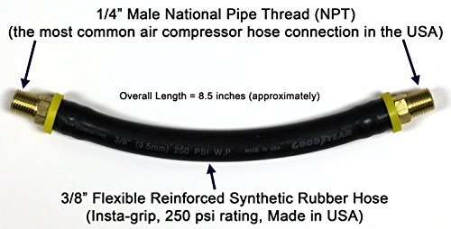 8.5-inch Short Air Compressor Hose: 1/4" Male NPT to 1/4" Male NPT Connections