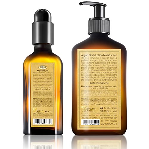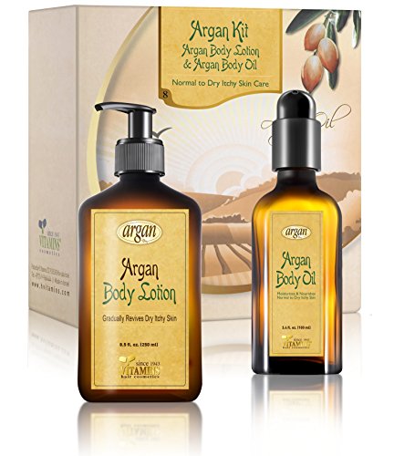 -. Feature : Unique Body Kit for Dry or Damaged Skin - Gentle Argan Body Oil along with an Easily Absorbed Light Argan Body Lotion Cream in a Decorated Gift Box / Revives, Renews, Repairs & Calms Sensitive, Itchy, Irritated or Dry Skin to Obtain Smooth, Soft and Youthful Vital Skin Appearance / Exclusive Natural Herbal Complex - Based On a Certified Cold Pressed Argan Oil Supplemented By Exclusive Plant Extracts to Obtain Optimal Results. Rich in Vitamins, Fatty Acids, Minerals and Antioxidants / Reputable & Established Company Since 1943 - These Unique Argan Oil Based Products are Manufactured For More than 20 Years / Paraben Free, Sulfate Free, Alcohol Free, Not Tested On Animals, Cruelty Free - Your Skin Will Look & Feel Calm, Hydrated, Smooth, Fresh and Vital...