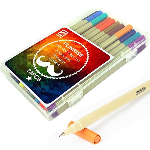Plinrise Hm-002 Fiber Tip Drawing Pen,fineliner Pen,fine Point Marker Pen,pack of 24 Assorted Colors