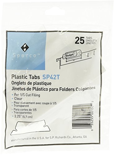 S.P. Richards Company Plastic Tabs with Inserts, 1/5 Cut, 2-Inch Wide, 25 per Pack, Clear (SPRSP42T)