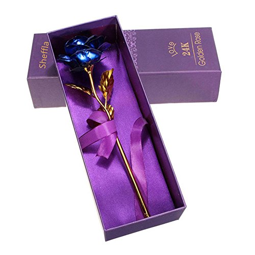24K Gold Foil Rose Flower, Artificial Never fading Rose - Gift for Mother’s Day, Valentine’s Day, Anniversary, Birthday gift, Wedding gift by Sheffla (Blue)