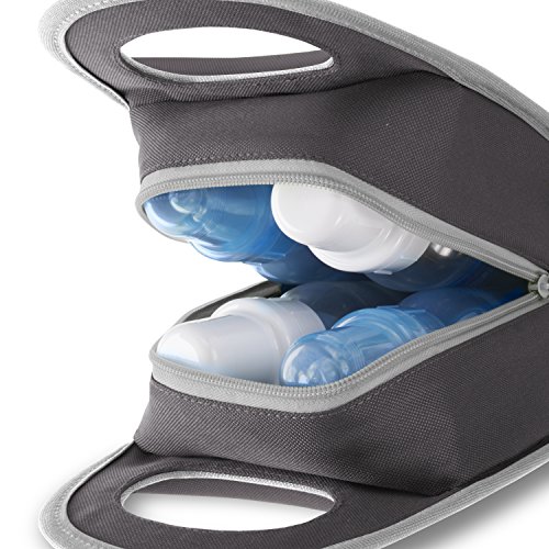 Munchkin's Cool Bottle Bag is a chic, multi-functional way to keep milk bottles cool and fresh during long stretches of time. This adjustable bag expands to hold up to 4 bottles and then folds flat for easy storage. With various compartments to store kids' bottles and feeding accessories, this bottle tote makes being on the go easy. Finally, the bag is made of durable material, so it's super easy to clean - just wipe with a damp cloth.