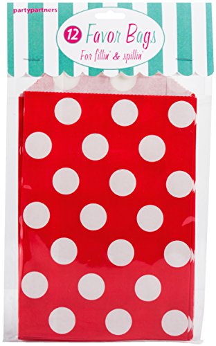 Party Partners 12 Count Paper Favor Bag, Red Dots