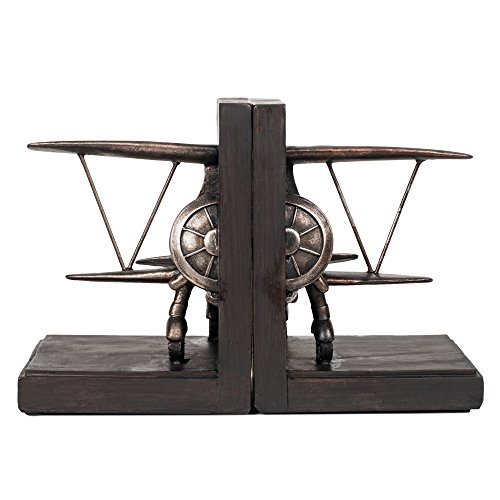 Airplane Pewter Finish 8 inch Decorative Stoneware Bookends Set