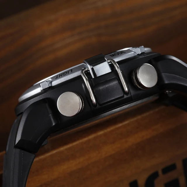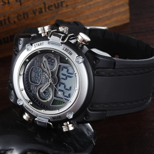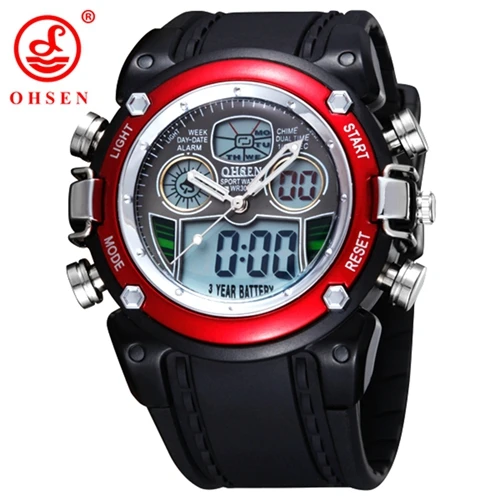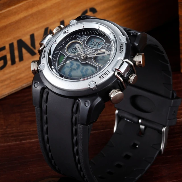 | [해외]원래 ohsen 디지털 석영 남성 스포츠 손목 시계 실리콘 스트랩 30 메터 방수 실버 패션 군사 소년 남성 시계 |