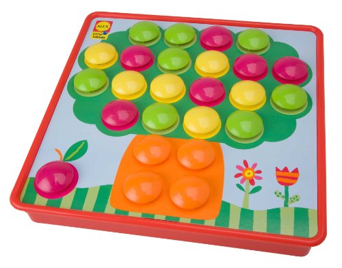 ALEX Toys Little Hands Button Art comes with over 40 buttons and 10 pictures for hours of artistic fun. This toy is part of the Little Hands Skill Builder series designed for preschoolers to develop hand-eye coordination, fine motor skills and creative thinking. It also comes with a wide storage tray to keep everything together. All your child has to do is match and snap the chunky buttons to complete the pictures. The pictures include a frog, bird, house, tree, truck, and more, all perfect for little ones learning how to use their creativity. Pick everything up and place back into the wide storage tray for a fast and easy cleanup. Includes 46 colorful buttons, 10 different pictures and storage tray. Recommended for children 2 years of age and older.Feature