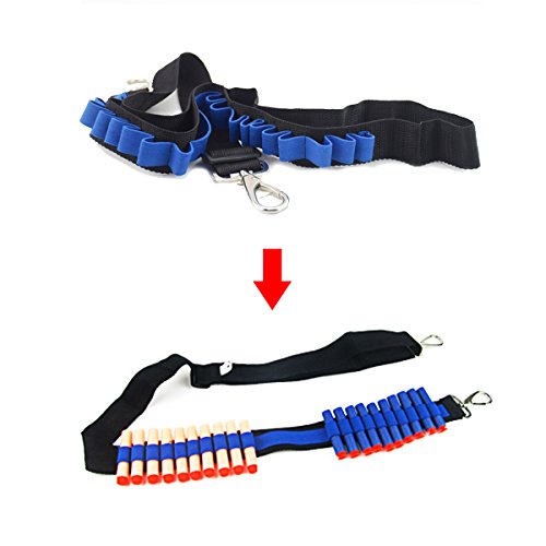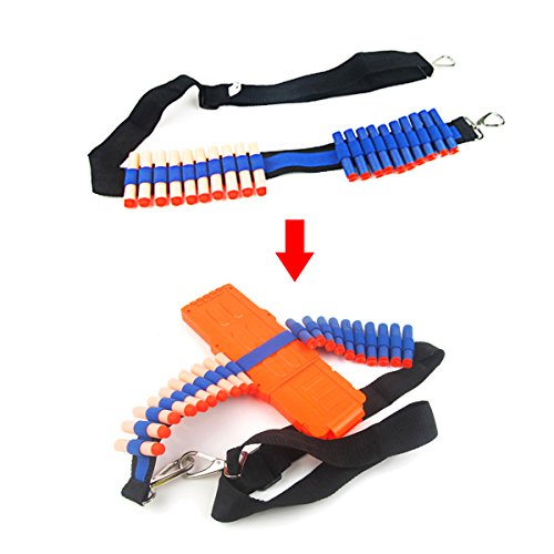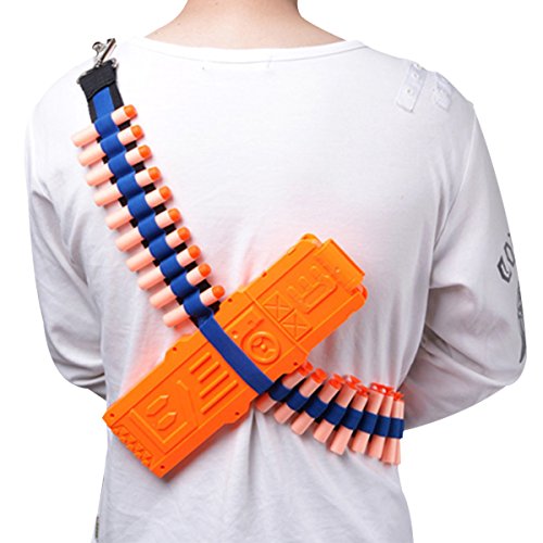 The bandolier can hold 20pcs soft foam elite darts for Nerf N-strike Blasters at one time , and the bullet clip also can be inserted into its midle part