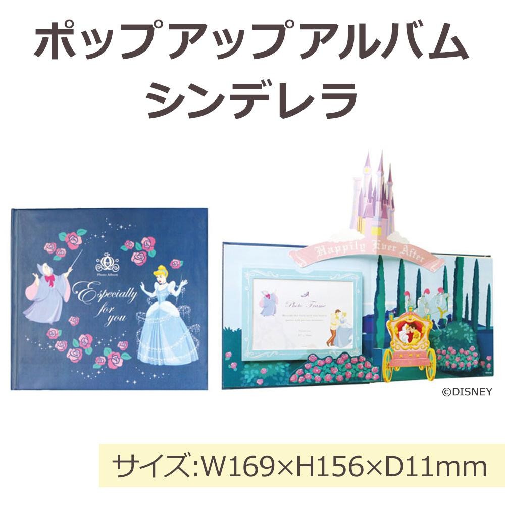 カバーを開くと、シンデレラのキャラクターたちが飛び出すポップアップアルバム♪見開きで開いたまま写真立てのように飾ることもできます。大切な記念日や楽しい思い出の記録にはもちろん、贈り物にもぴったりです。 |