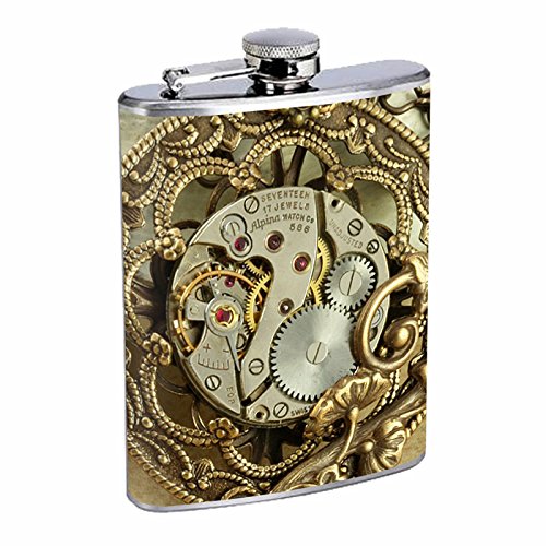 -. Title : Vintage Steampunk Science Fiction Steam Powered Machine Art Flask S43 Stainless Steel 8oz Hip Silver Alcohol Whiskey Drinking Brandy Rum