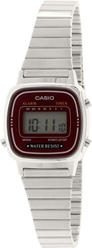 Casio #LA670WA-4 Women's Metal Band Countdown Timer Alarm LCD Digital Watch (Red)