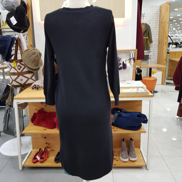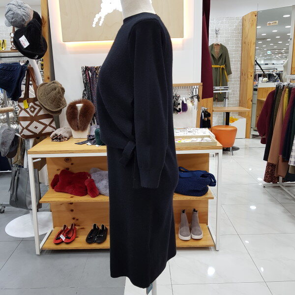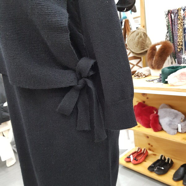 슬림핏의 니트원피스입니다허리부분에 사이드리본을 묶을수 있어 허리 라인이 이쁜원피스입니다