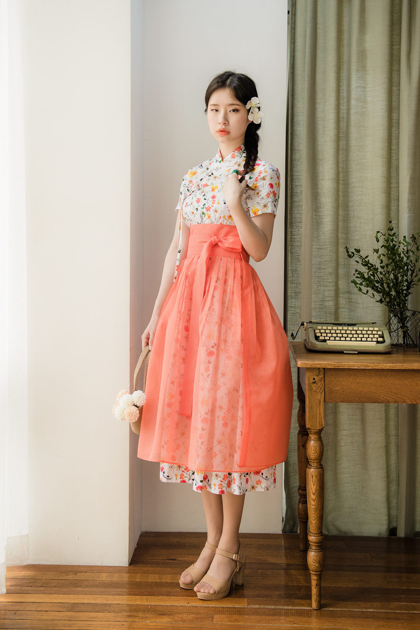 철릭원피스 오렌지꽃