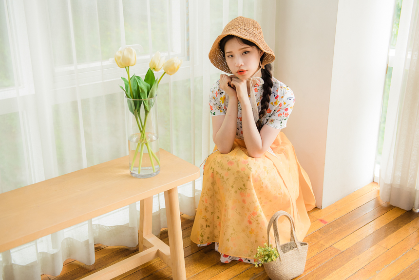 ※아래 사진은 꽃닮 시스루 덧치마와 함께 코디한 참고컷입니다.
