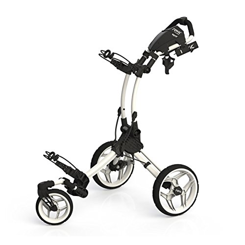 The rovic is an exciting new collection of push carts that offers outstanding quality and design at a great price. the rovic rv1s golf push cart features a new swivel front wheel for maneuverability, foot break, large console and when collapsed measures 24 x 15 x 13.Feature