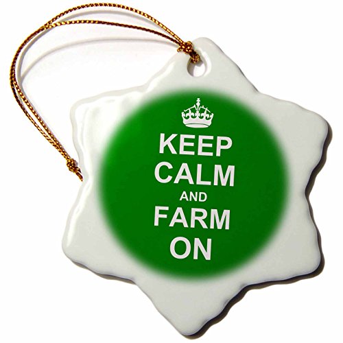 3dRose orn_157717_1 Keep Calm and Farm-On Gift for Farmers Green Motivational Motivating Calming Snowflake Ornament, Porcelain, 3-Inch