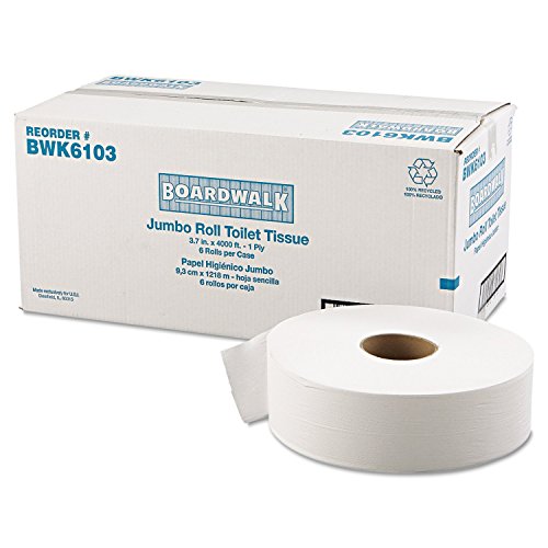 Boardwalk 6103JRT Jumbo-Roll Bath Tissue, 1-Ply, White, 3-5/8" x 4000 ft (Case of 6)