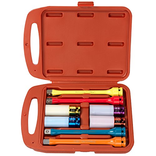 Neiko 02453A Torque Limiting Extension Bar and Deep Impact Metric Socket Set, 1/2" CrMo | 8-Piece Set