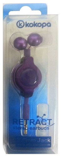-. Title : Kokopa HF-RETR-PURPLE Extra Small Retractable Stereo Earbuds with 3.5mm Jack and Extra Multi Sized Eargels