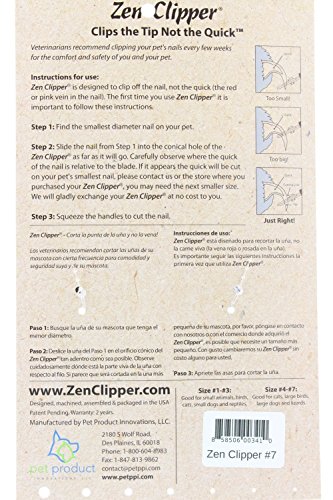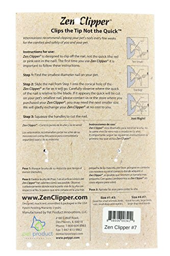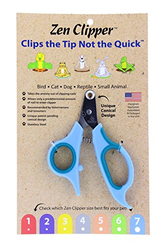 Studio : Zen clipper Publisher : Zen clipper Binding : Misc. Product Description The Zen Clipper is a new revolutionary pet nail clipper that is designed to clip the tip of the nail. Zen Clipper has a patent-pending conical blade that only allows the tip of the pet's nail into the cutting area. It's like putting the nail into a small funnel, taking the anxiety out of clipping nails while providing effortless precision. Zen Clipper is made from the finest quality stainless steel, giving a long-lasting, sharp clipping edge and blades. Its cushioned non-slip handle and stainless steel design make a comfortable clipper that is durable, attractive and easy to use. 0