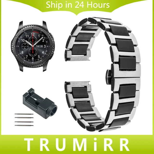| [해외]22 미리메터 세라믹 + 스테인레스 스틸 시계 밴드 링크 리무버 samsung gear s3 클래식 프론티어 butterfly 버클 스트랩 팔찌 |