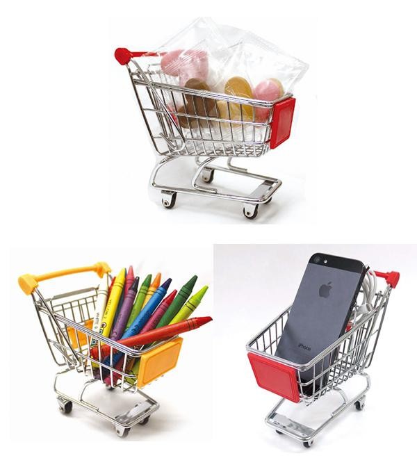 小さいのに存在感のある手のひらサイズのカートです。お菓子や文房具など机上の小物を入れてインテリアのアクセントに♪