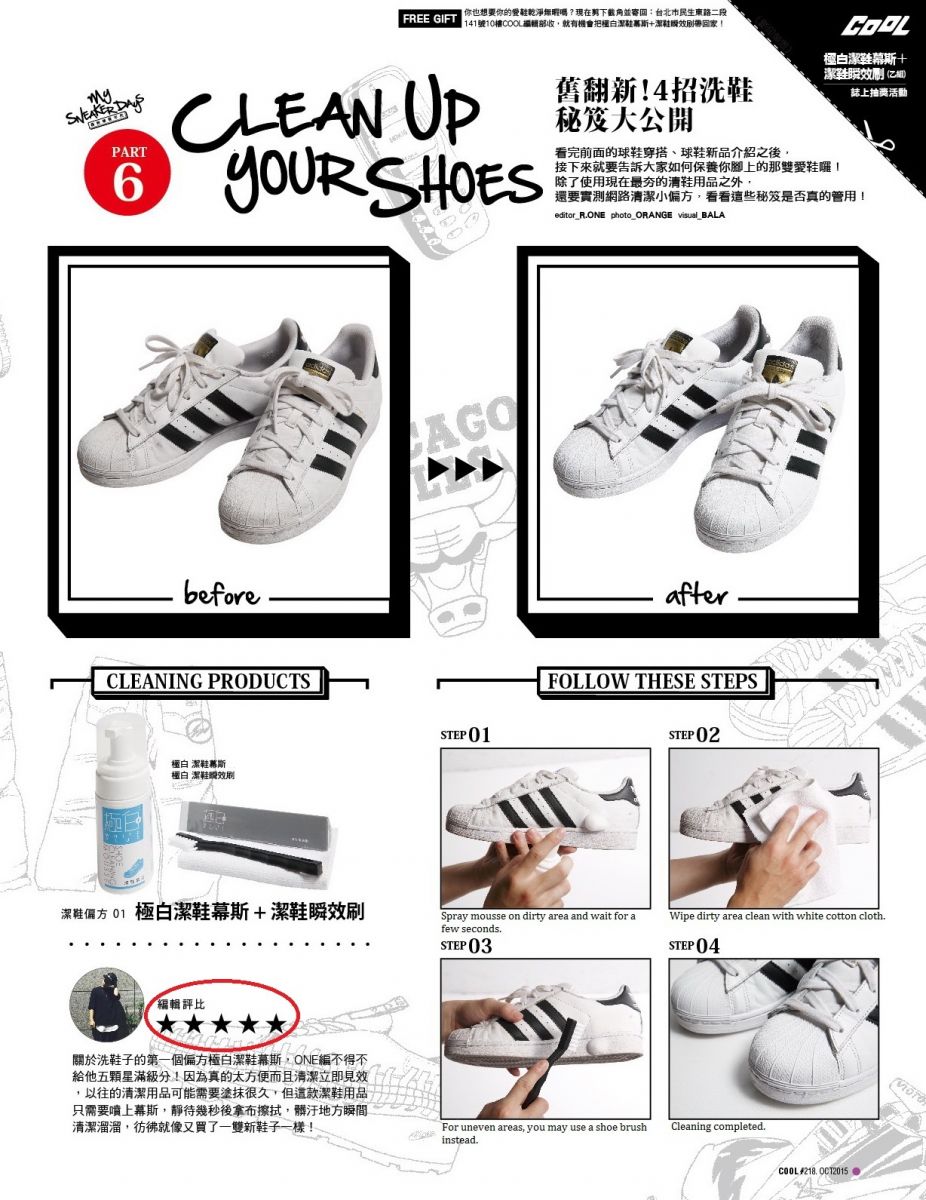 Cleaning your white shoes with WHITE PLUS SHOE CLEANING MOUSSE