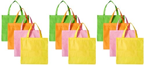 12 Large Neon Tote Bags, Assorted Colors