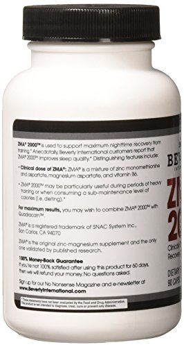 ReleaseDate : 2017-05-30 Studio : Beverly International Publisher : Beverly International Binding : Health and Beauty Product Description Stress, kids, evening workouts, too much wine or coffee -any of a number of things can prevent you from having a deep, restorative sleep. Solution: ZMA 2000. This natural, clinically based formula helps you get the kind of sleep from which you wake up feeling recovered and ready to go.?Nighttime shouldn't just be restful; it should be restorative. Use ZMA 2000 to make the conversion! 0