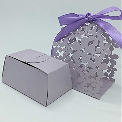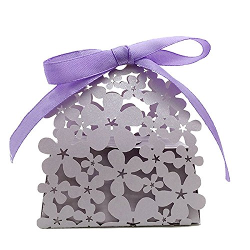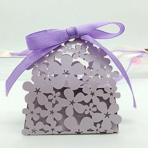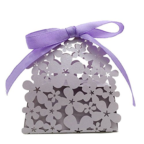 NUOLUX 20pcs Candy Box Roses Flowers with Ribbons for Wedding Party Favors Purple