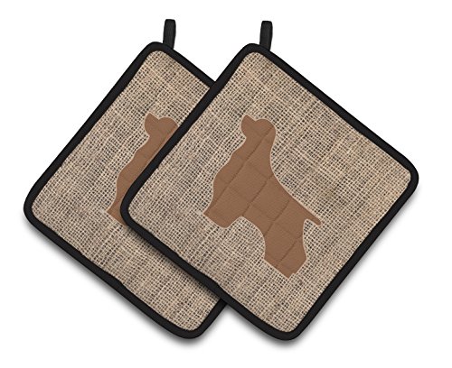 Caroline's Treasures Cocker Spaniel Faux Burlap & Brown Pair of Pot Holders BB1075-BL-BN-PTHD, 7.5HX7.5W, Multicolor