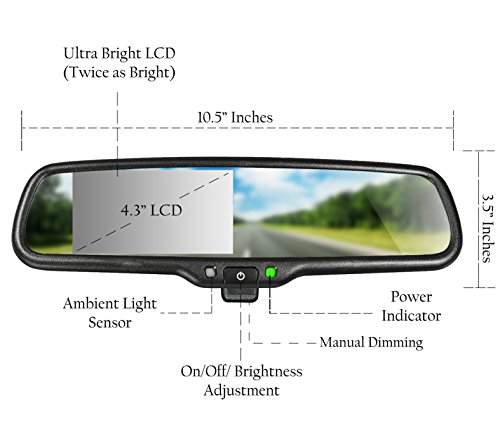Master Tailgaters OEM Rear View Mirror with 4.3" Auto Adjusting Brightness LCD + Manual Dimming - Universal Fit