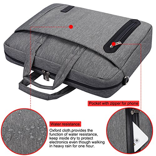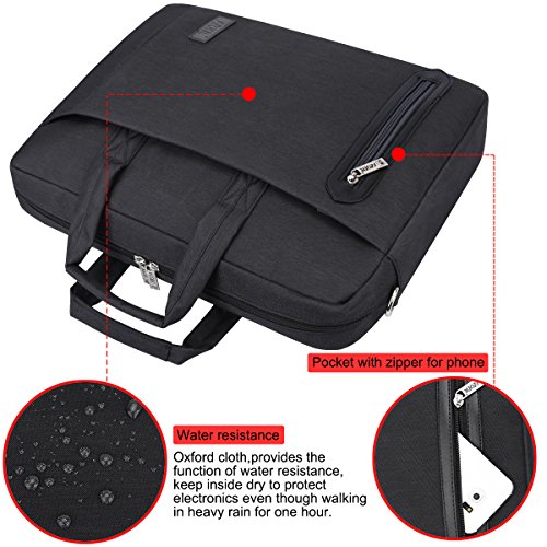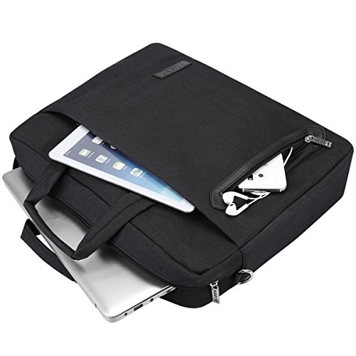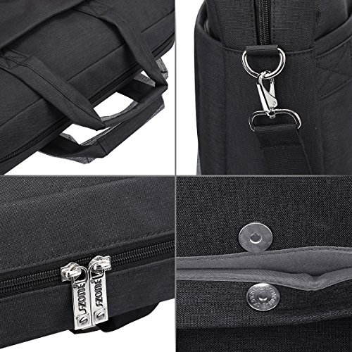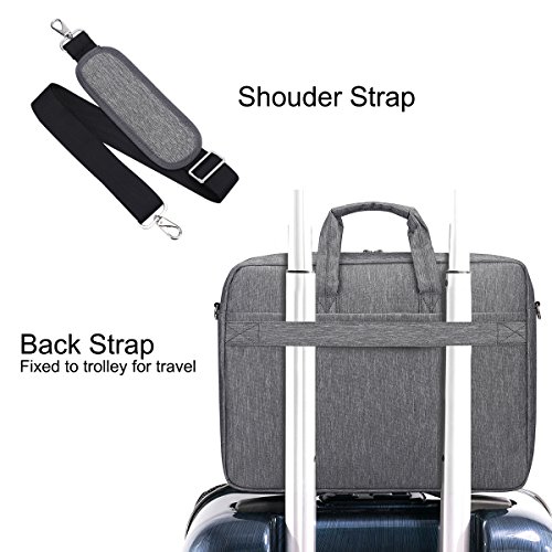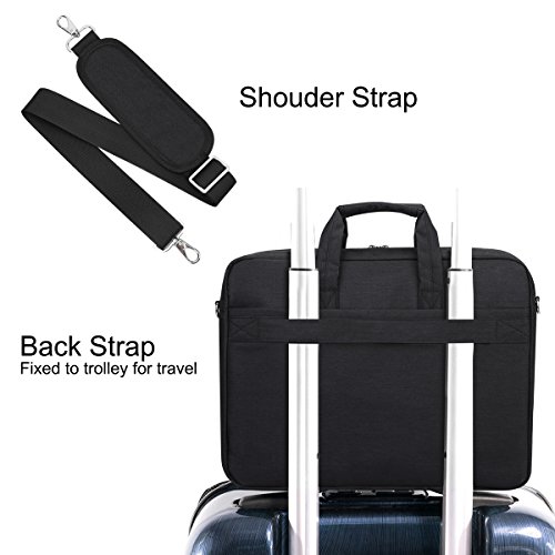 -. Feature : Material: polyester fabric, cotton liner, Heavy duty metal zippers and hardware / Dimensions: 17.7 x 13.7x 4.2 inches, Ideal for most Popular Laptop / Ultrabook / Chromebook up to 17.3 inches on the market. / Built-in shock-proof and waterproof foam laptop compartment keeps your laptop safe and secure, A perfect bag to carry and protect your device safely on a daily basis. / Front pocket with zipper designs for storage of pens,phone,cards,power bank,books etc; Lage belt design, Provides the funtion of fixing to the lage trolley, offering added convenience / Slim and compact yet provides excellent protection for your device. Comfortable tote handles allow the bag to be carried as a portfolio/briefcase or a messenger bag with the attached shoulder strap.