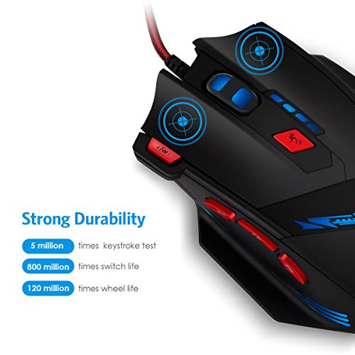 6 Adjustable DPI Settings - Integrated 9200 DPI optical gaming sensor and 6 adjustable DPI setting for precise cursor control (1000/ 1600/ 2400/ 3200/ 5500/ 9200). Giving you the most excited experience of playing game.