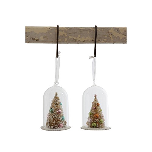 Set of 2 Assorted 5"H Glass Cloche with Tree Christmas Ornaments