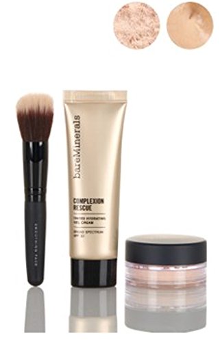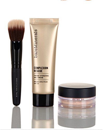 -. Binding : Misc. -. Brand : Bare Escentuals -. Feature : ravel Size Complexion Rescue(R) Tinted Hydrating Gel Cream (0.68 fl. oz.) / Tinted Mineral Veil(R) Finishing Powder Broad Spectrum SPF 25 (0.05 oz.) / Mini Smoothing Face Brush (4.5") / Makeup Bag (6.5" L x 3" W x 2.75" D) / 4-piece set/ MADE IN USA / These ar not full size products. -. IsAdultProduct : 0 -. Label : Bare Escentuals -. Manufacturer : Bare Escentuals -. NumberOfItems : 4 -. ProductGroup : Beauty -. ProductTypeName : BEAUTY -. Publisher : Bare Escentuals -. Studio : Bare Escentuals -. Title : bareMinerals Meet Complexion Rescue Foundation Kit 3-Piece Plus Bag