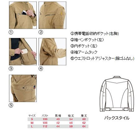 -. Feature : 引き裂きに強い日本製肉厚T/Cリップ素材を使用。 優れた洗濯耐久性など、長く快適に着用できます。 / これまでになかった女性専用ジャケット&カーゴパンツ(同アイテム)。専用デザインにより美しいシルエットを実現しました。 / Phone収納ポケット(右胸)、内ポケット(左)、袖ペンポケット(左) 袖アームタックあり ウエストドットアジャスター(脇ゴムなし) / [素材] T/Cリップクロス、帯電防止 [混率] ポリエステル 65% 綿 35% ※ 【綿製品についてのご注意】綿高混率の素材の特徴として、肌触りが良い・吸水性が良い・汚れが落ちやすいなどの衣服の素材として適した特性がある反面、デメリットとして、皺になりやすい・縮みやすい・染料の色が落ちやすいなどの特性があります。特に洗濯時の洗濯方法・乾燥方法によっては、これらのデメリット特性を誘引することが考えられますので十分ご注意下さい。具体的には、洗濯ネットを使う・お湯を使わない・乾燥機を使わない・陰干しをする、あるいは予め大き目のサイズを選ぶなどのご配慮をお願い致します。