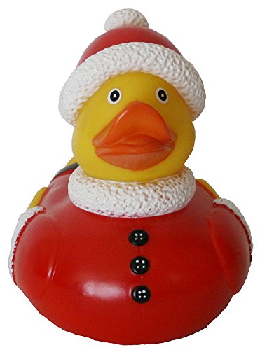 Product Description Santa Rubber Duck, Waddlers brand, Red Santa Clause rubber ducky, bigger, 5" than normal adult hand palm size 3.5", nontoxic safe bath toy meeting CPSIA and California Proposition 65 Product Safety Standard. Size: 5.25" L x 4.5" W x 5" H, color red / yellow / white. 0