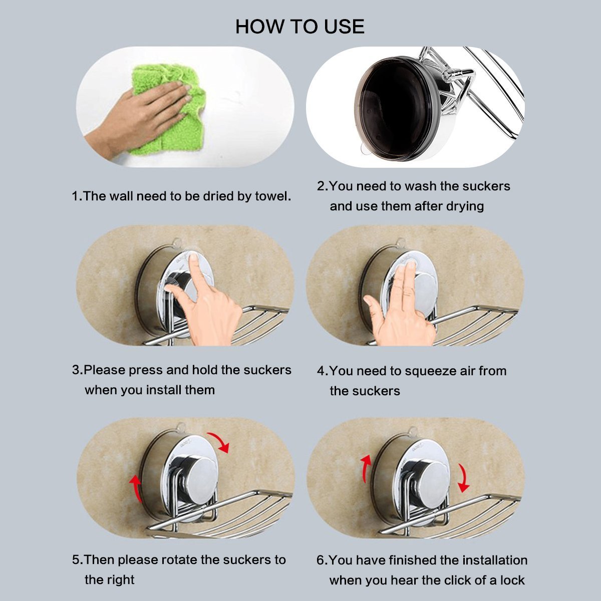 2. Attach the suction cup to a smooth wall free from dust and water.