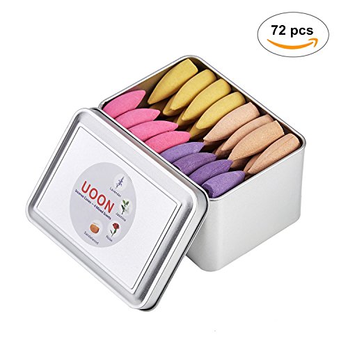 UOON Backflow Incense Cones | Rose + Jasmine + Lavender + Sandalwood Mixed Natural Fragrant Cones (72pcs,15minutes)