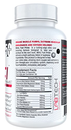 Studio : LabTech Nutraceuticals Publisher : LabTech Nutraceuticals Binding : Health and Beauty Product Description Nitric Oxide Supplements produce Insane Muscle Pump, Extreme Muscular Endurance and Oxygen Delivery When you feel fatigued in the gym, do you think of taking nitric oxide supplements? Learn why you should consider Nitric Fuel Prime and blaze through your workout! One of the primary factors in a speedy recovery is being sure plenty of nutrients get to the muscle tissues after a hard workour, bllod flow is really going to make a difference and a good nitric oxide supplement helps that process. Nitric Fuel Prime is a cutting-edge nitric oxide boosting formula designed to take your workout to the next level. Nitric Fuel Prime delivers a multi-pathway blend of Beta Alanine, Agmitine, Glycarol, Citrulline and Nitrosigine helping your veins relax, allowing more oxygen and nutrients to pass through your circulatory system. Includes Glycerol to improve overall hyperhydration, endurance and pump* 0