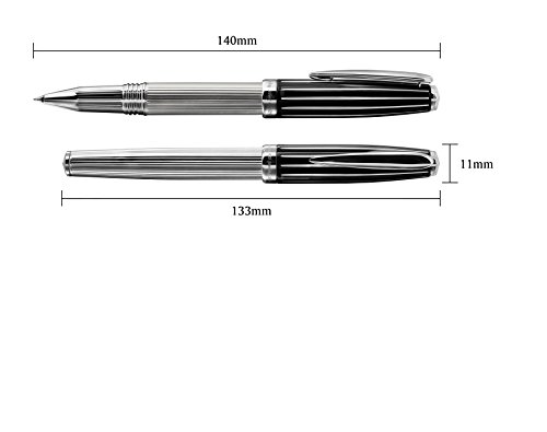 Supplied with gift box, (1) extra Xezo Speed master roller pen refill (total writing length exceeds 3280 ft.), sterling silver polishing cloth, certificate and 3-year warranty card. German-made fine point 0.5-0.6 mm.