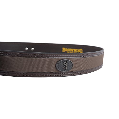 Product Description This classic Browning belt is crafted from genuine leather with a nylon inlay for long-wearing durability. The Buckmark ornament and buckle lend distinctive hunting-inspired style. Imported. 0