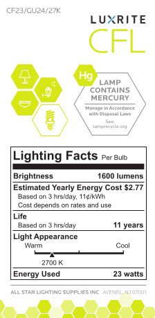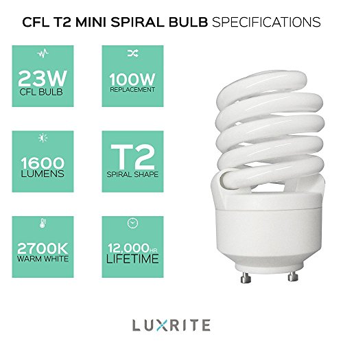 Luxrite LR22320 (4-Pack) CF23 23-Watt CFL T2 Spiral Bulb, Equivalent To 100W Incandescent, Warm Light 2700K, 1600 Lumens, GU24 Bi-Pin Base