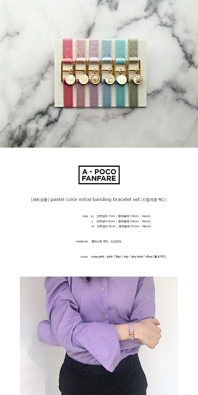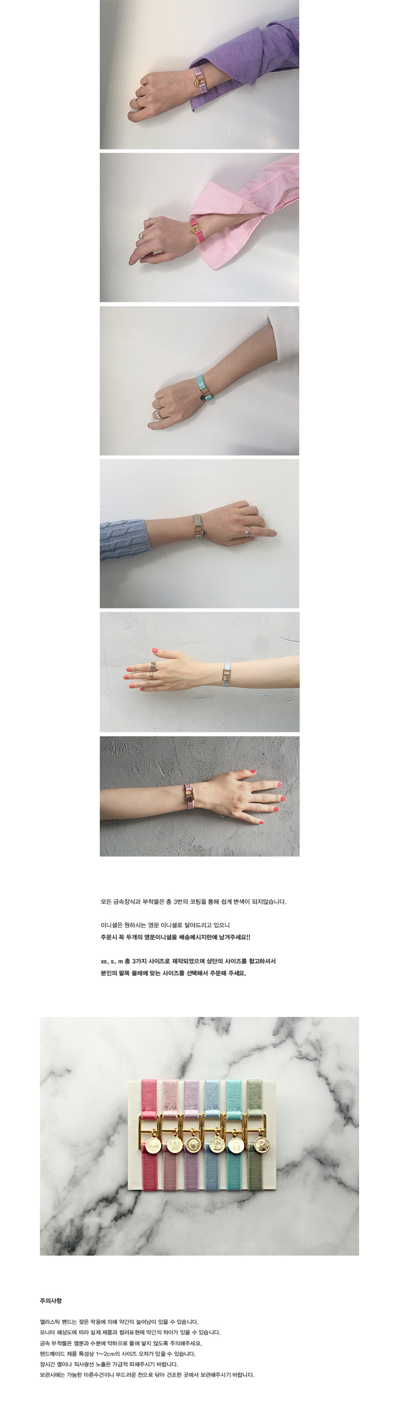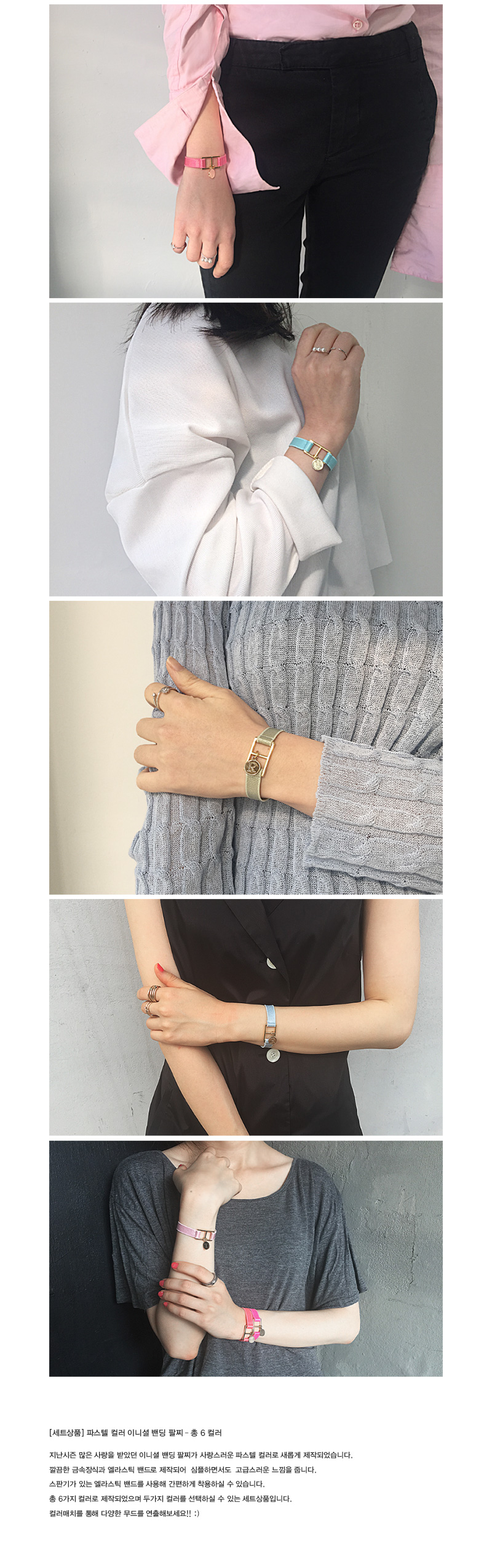 지난시즌 많은 사랑을 받았던 이니셜 밴딩 팔찌가 사랑스러운 파스텔 컬러로