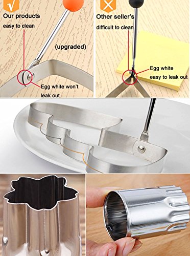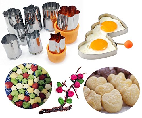 - VARIOIUS CUTE SHAPES FOR FUN: Will come with 8PCS different styles flower fruit cutter in 2 size (4 small and 4 big) includes flower, star, heart, bear, rabbit, and 1PC double heart egg pancake mold