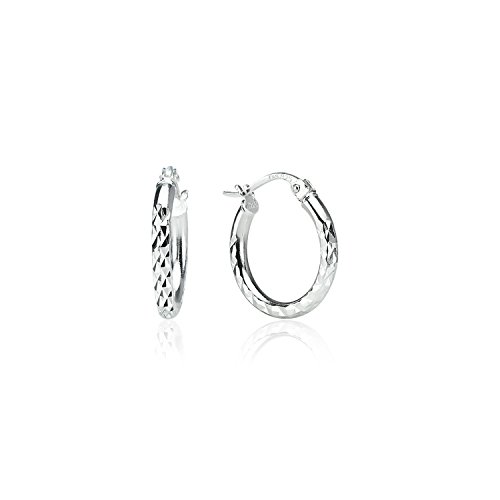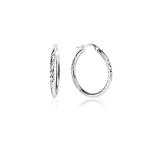 LOVVE Sterling Silver High Polished Round Diamond Textured 2mm Click-Top Hoop Earrings, All Sizes