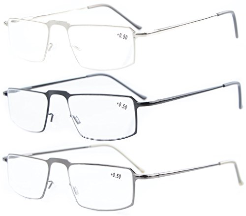 3-pack Eyekepper Classical Stainless Steel Frame Spring Temple Reading Glasses Rectangular Readers +0.75