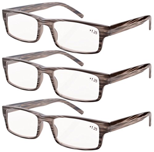 Eyekepper Spring Hinge Striped Reading Glasses (3 Pairs) Men Grey Stripe +2.50